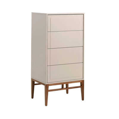 Chiffonnier aus Walnussholz mit weißen Schubladen und Chromstahl