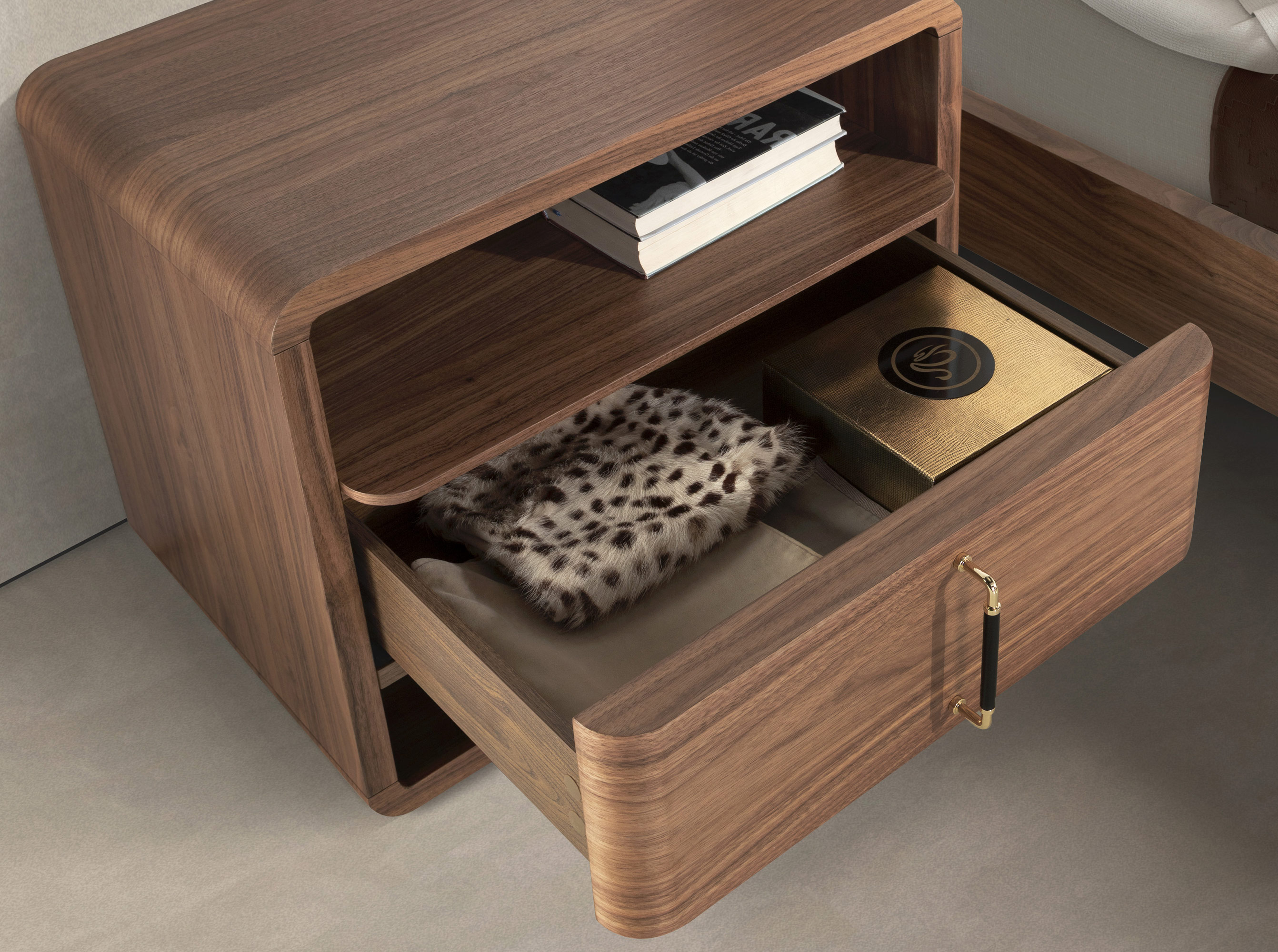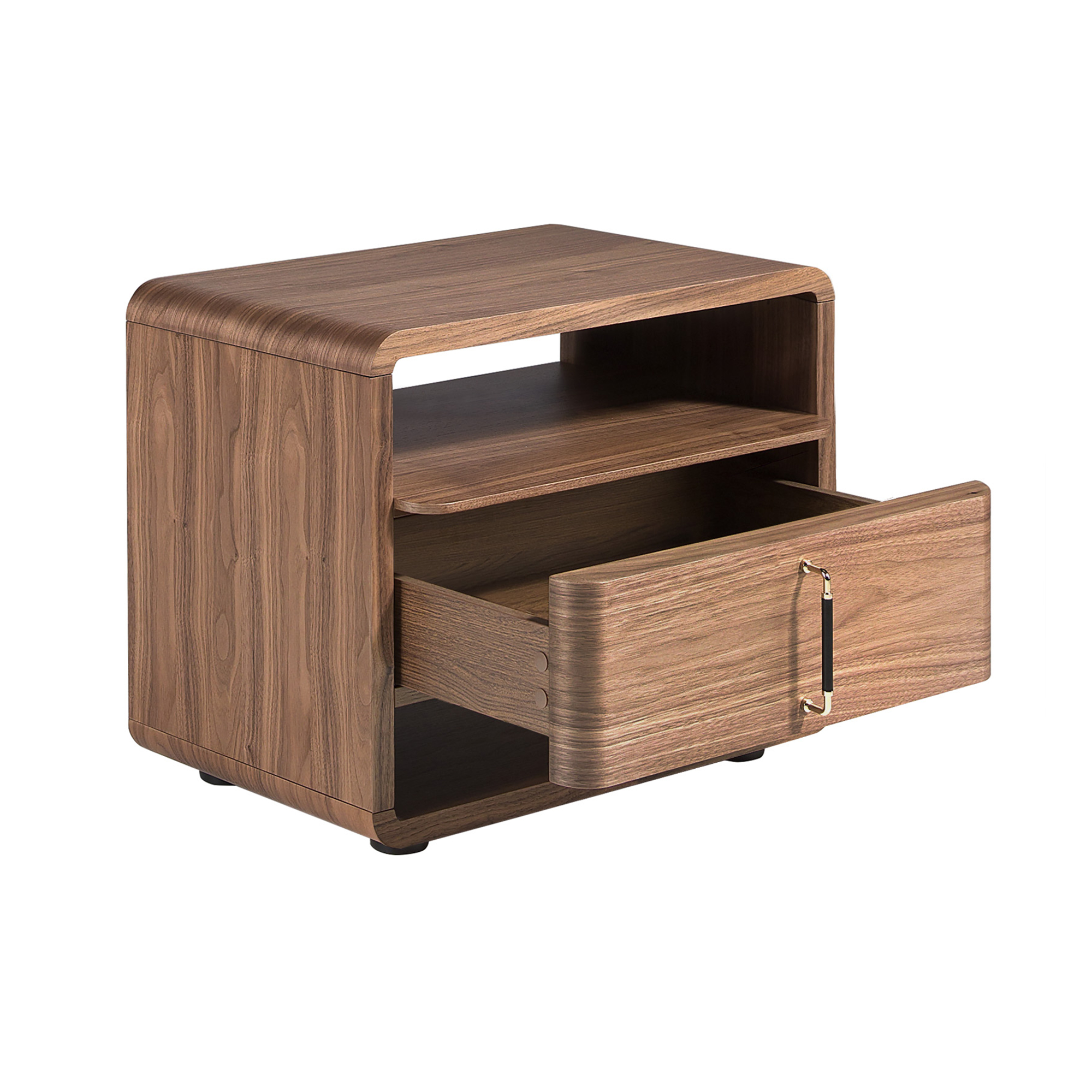 – Dieser elegante Nachttisch aus 0,5 mm starkem, natürlichem Walnussfurnier verleiht Ihrem Schlafzimmer den modernen und anderen Touch, den Sie suchen.