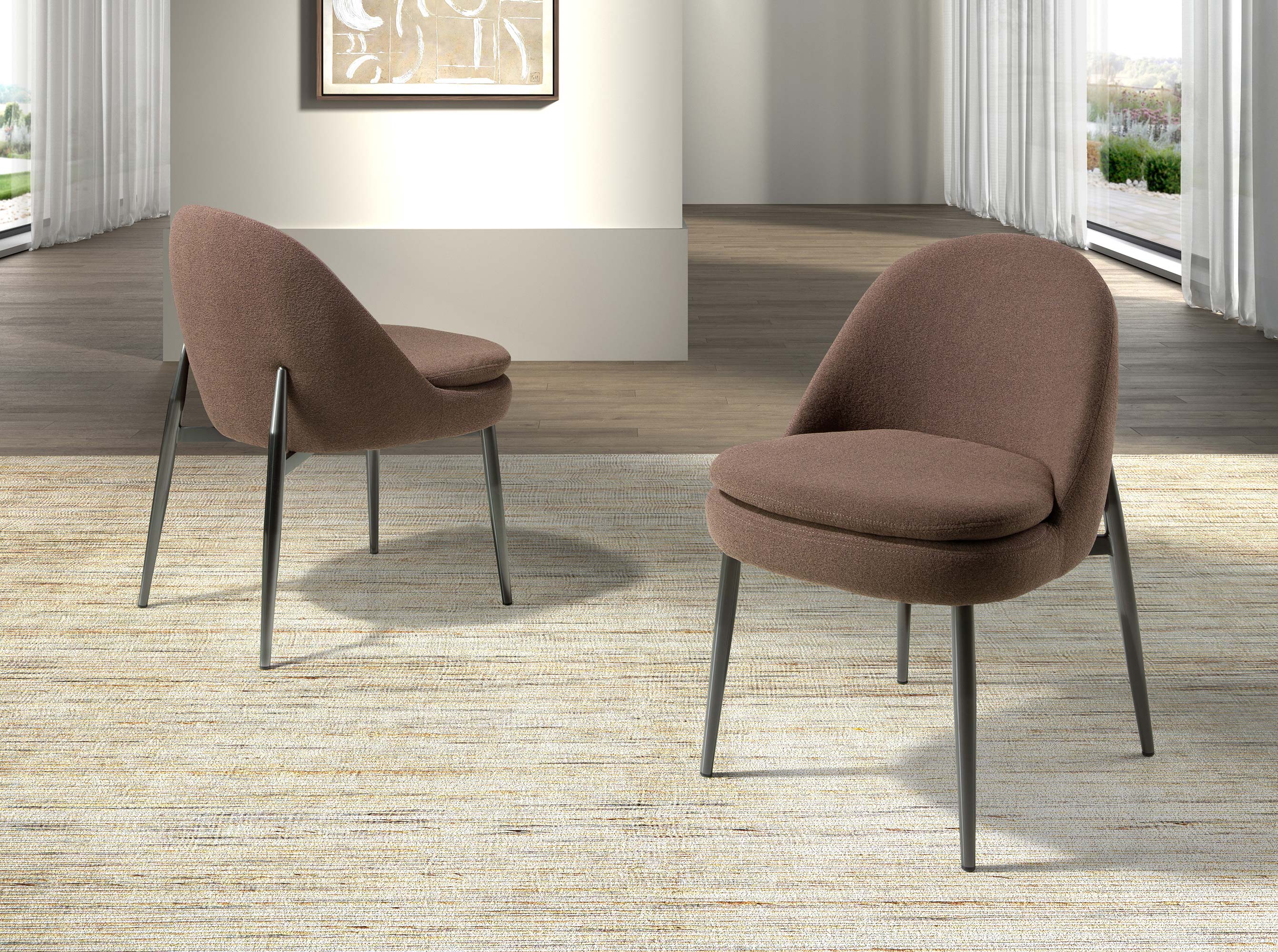 Chaise au design moderne avec assise et dossier tapissés en tissu marron foncé. Ses pieds en acier inoxydable chromé foncé, au style à la fois avant-gardiste et intemporel, en feront un indispensable pour votre cuisine ou votre salle à manger. Cette chaise de la marque Angel Cerdá allie le style unique et personnel de la marque à un confort et une stabilité optimaux, grâce à la haute qualité de son revêtement et à l’originalité de la structure de ses pieds.