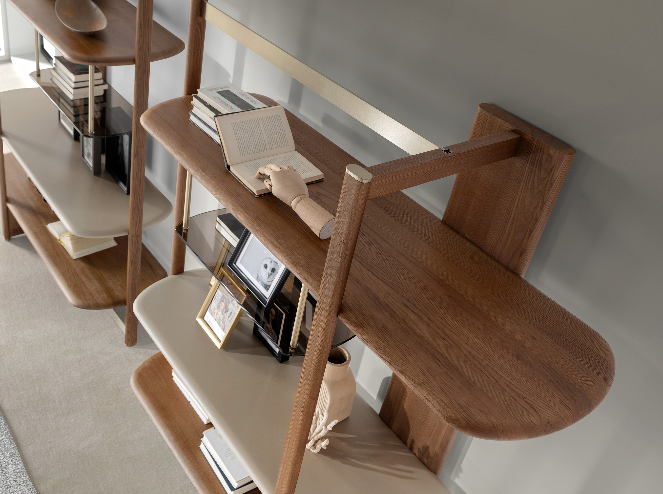 Правая прямоугольная стеллажная система из светлого ореха и дерева цвета грейдж mодель 3299 Angel Cerdá S.L.