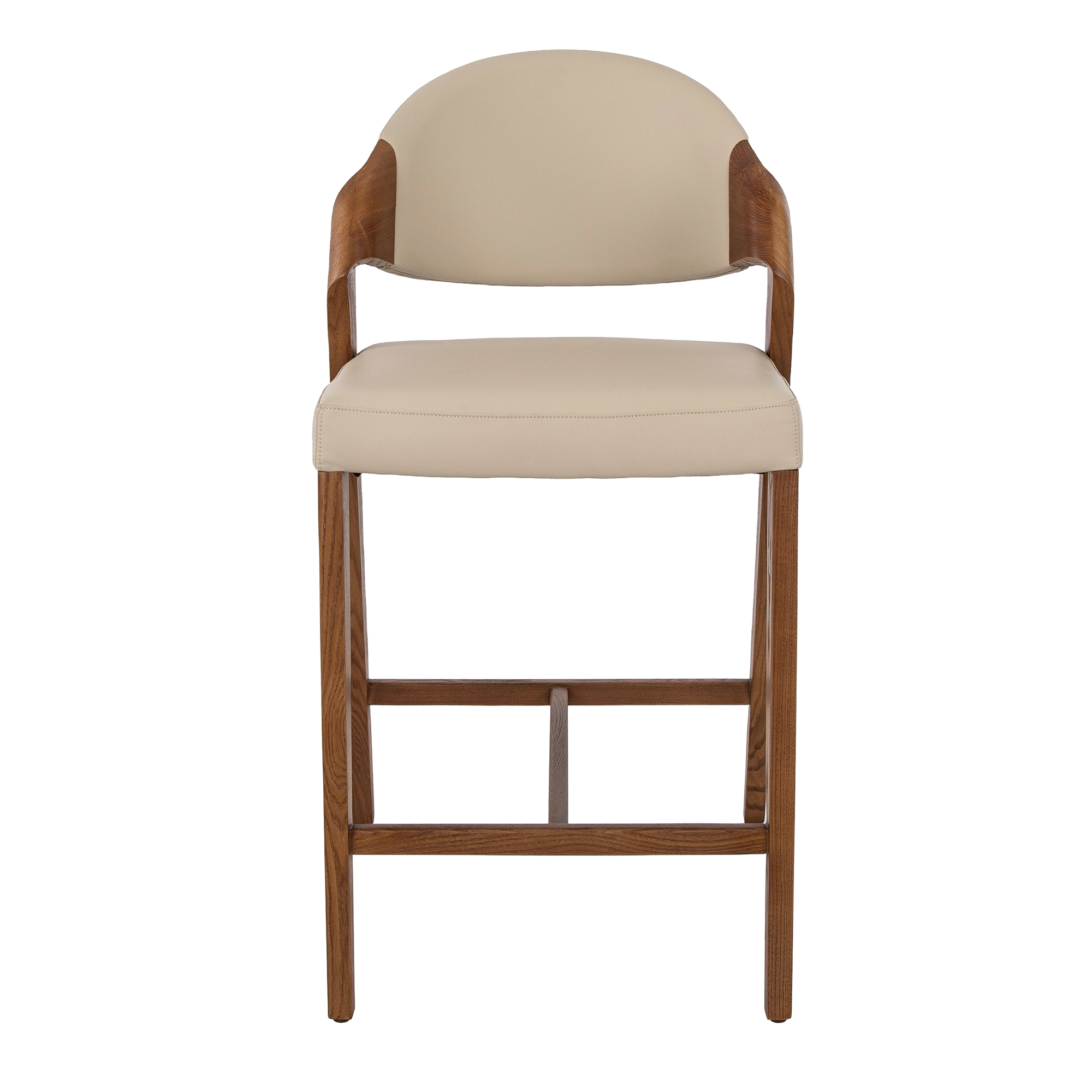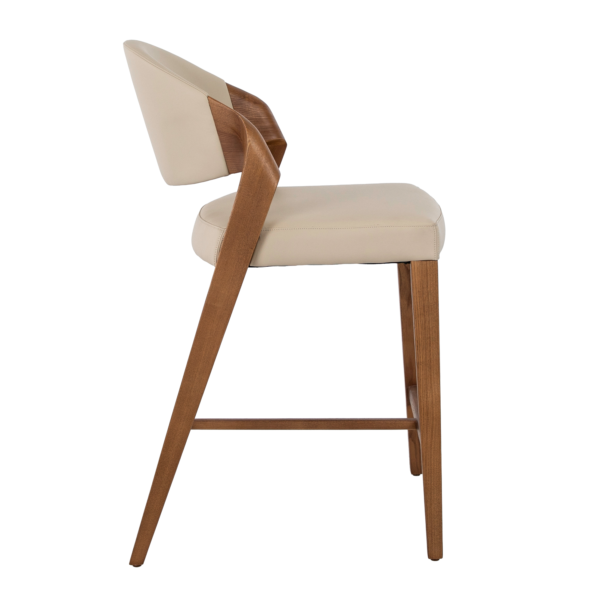 Барный стул современного дизайна с сиденьем и спинкой, обитыми экокожей цвета норки. Его деревянные ножки цвета орех в авангардном и одновременно вне времени стиле делают его обязательным элементом для кухни или столовой. Этот табурет бренда Angel Cerdá сочетает в себе уникальный стиль марки с максимальным комфортом и устойчивостью благодаря высокому качеству обивки и оригинальной конструкции ножек.
