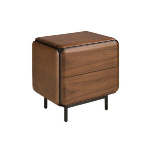 Bedside table in walnut, wenge and black steel