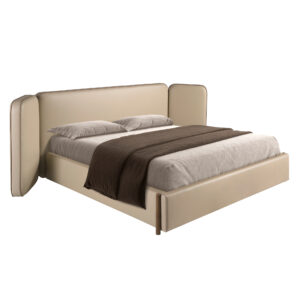 Dressing desk in faux leather, walnut and wood upholstered in mink-colored faux leather