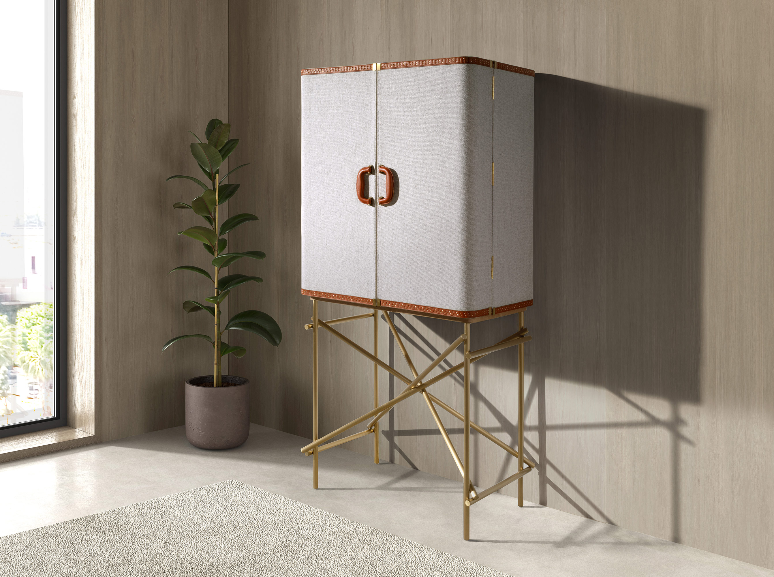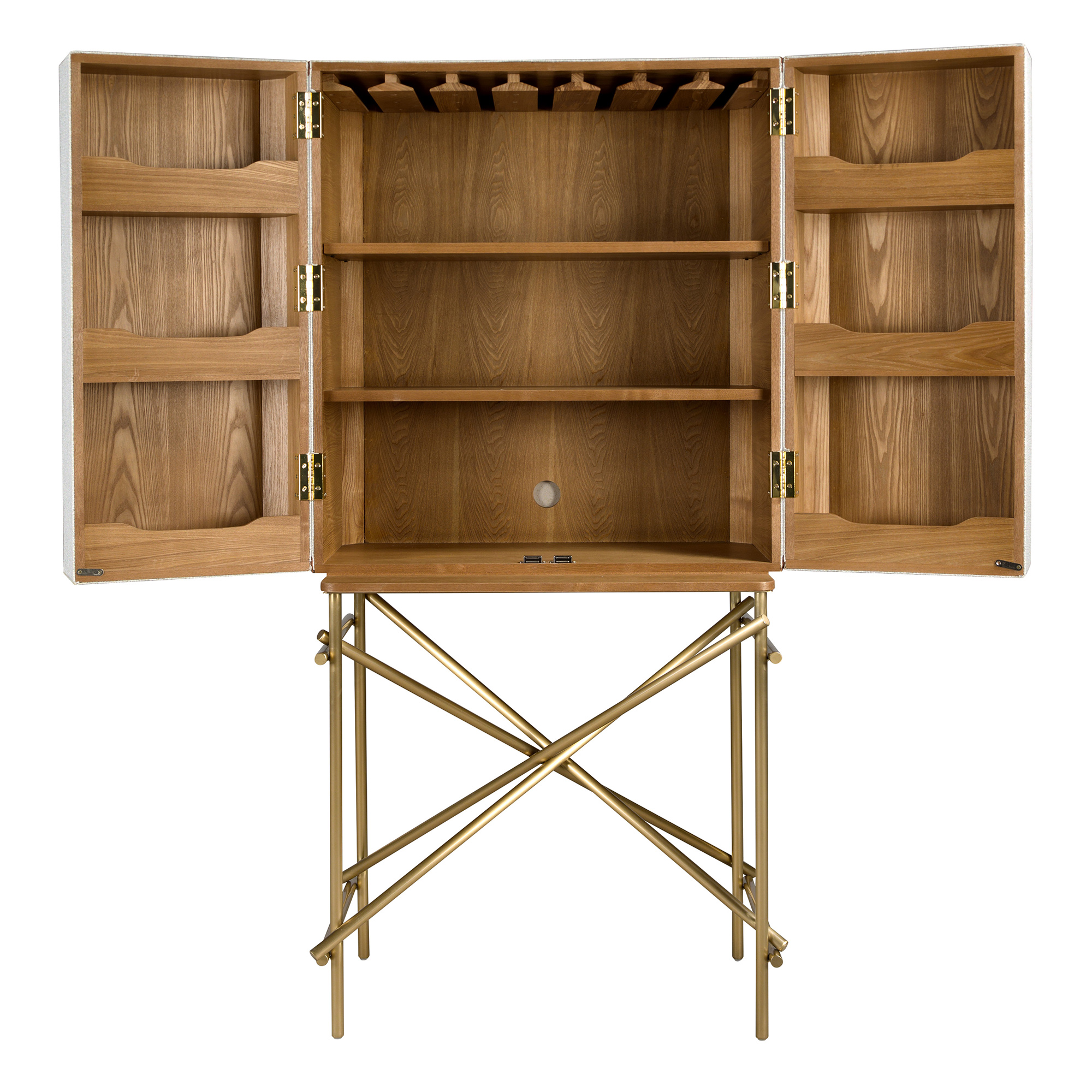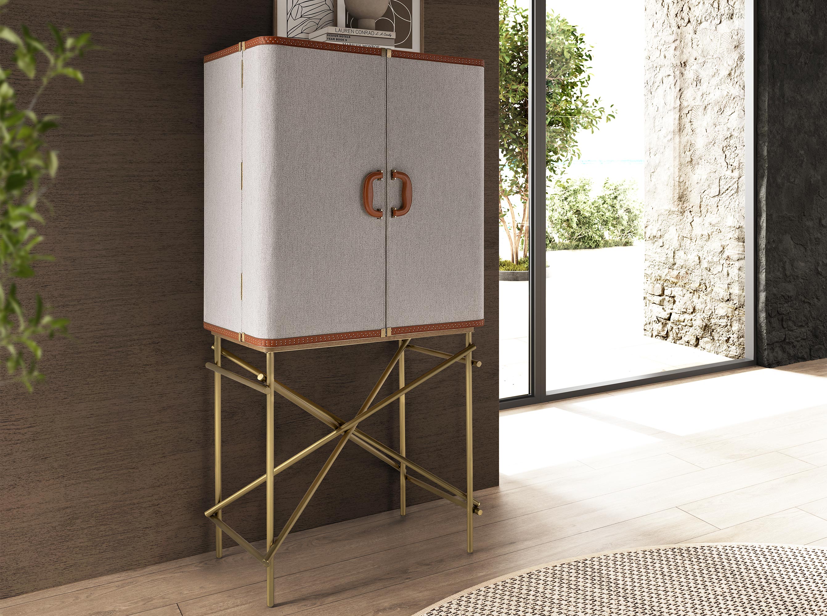 Tall sideboard, fabric, walnut and golden polished steel model 3272 Angel Cerdá S.L.