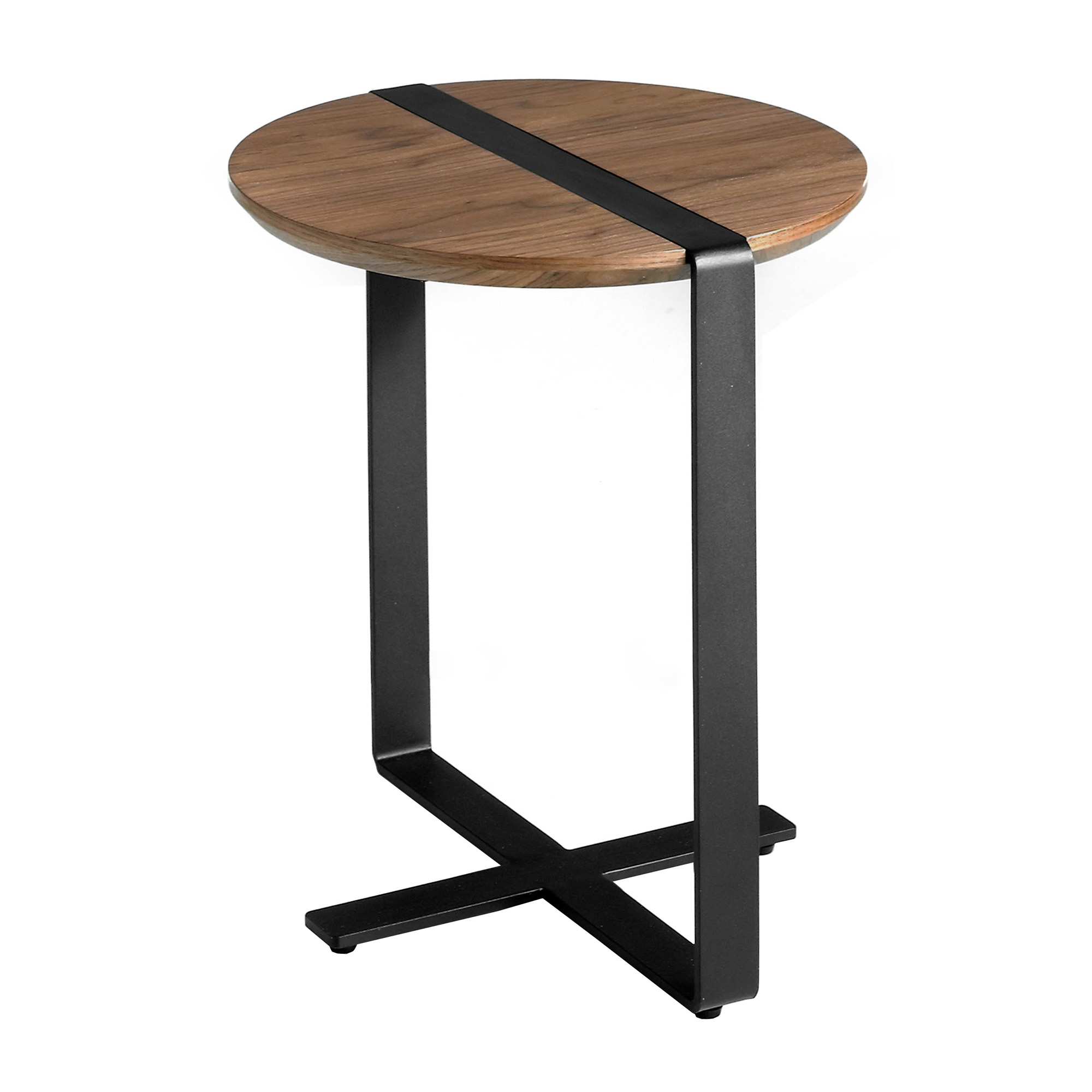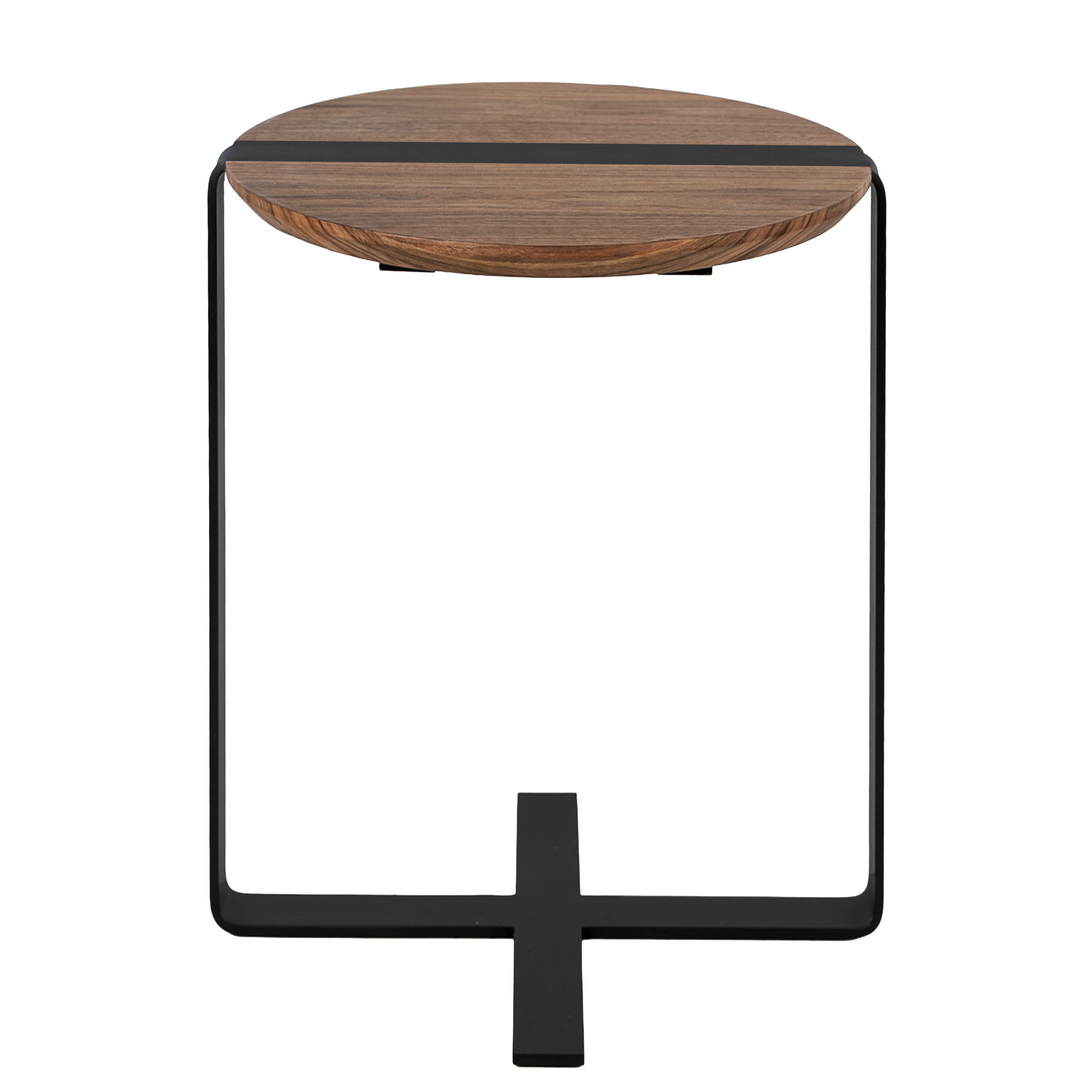 Corner table in walnut veneer. Steel structure painted in black epoxy.