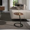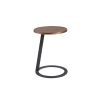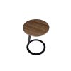 - STYLE:This corner table will add a modern touch to any room. Its structure and base in black epoxy stainless steel with a round top in walnut wood, makes it a perfect piece to combine with the latest trends in decoration.