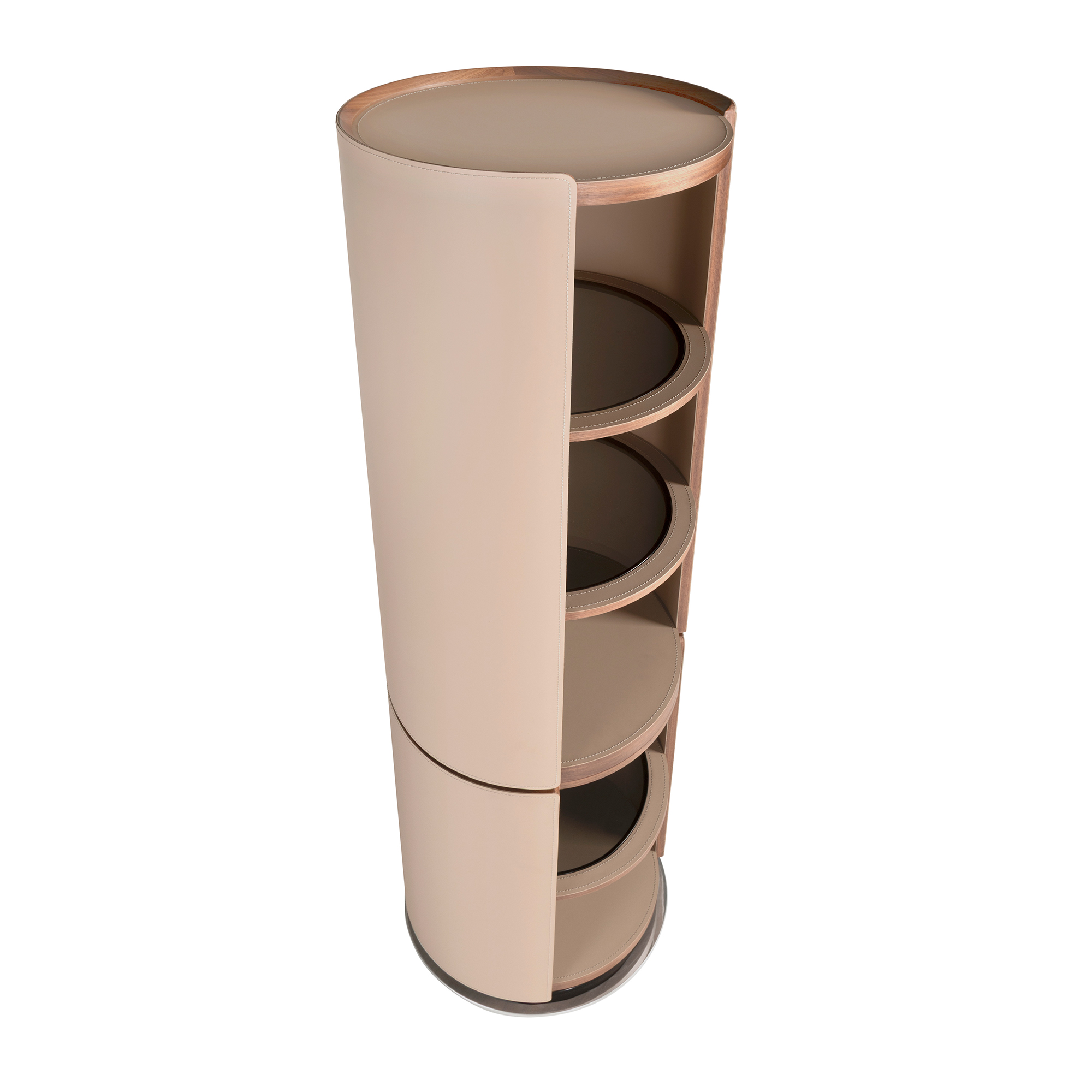 – Its vertical structure with curved lines in wood upholstered in leatherette provides a soft texture, enhancing the design of any space with a contemporary and sophisticated touch.