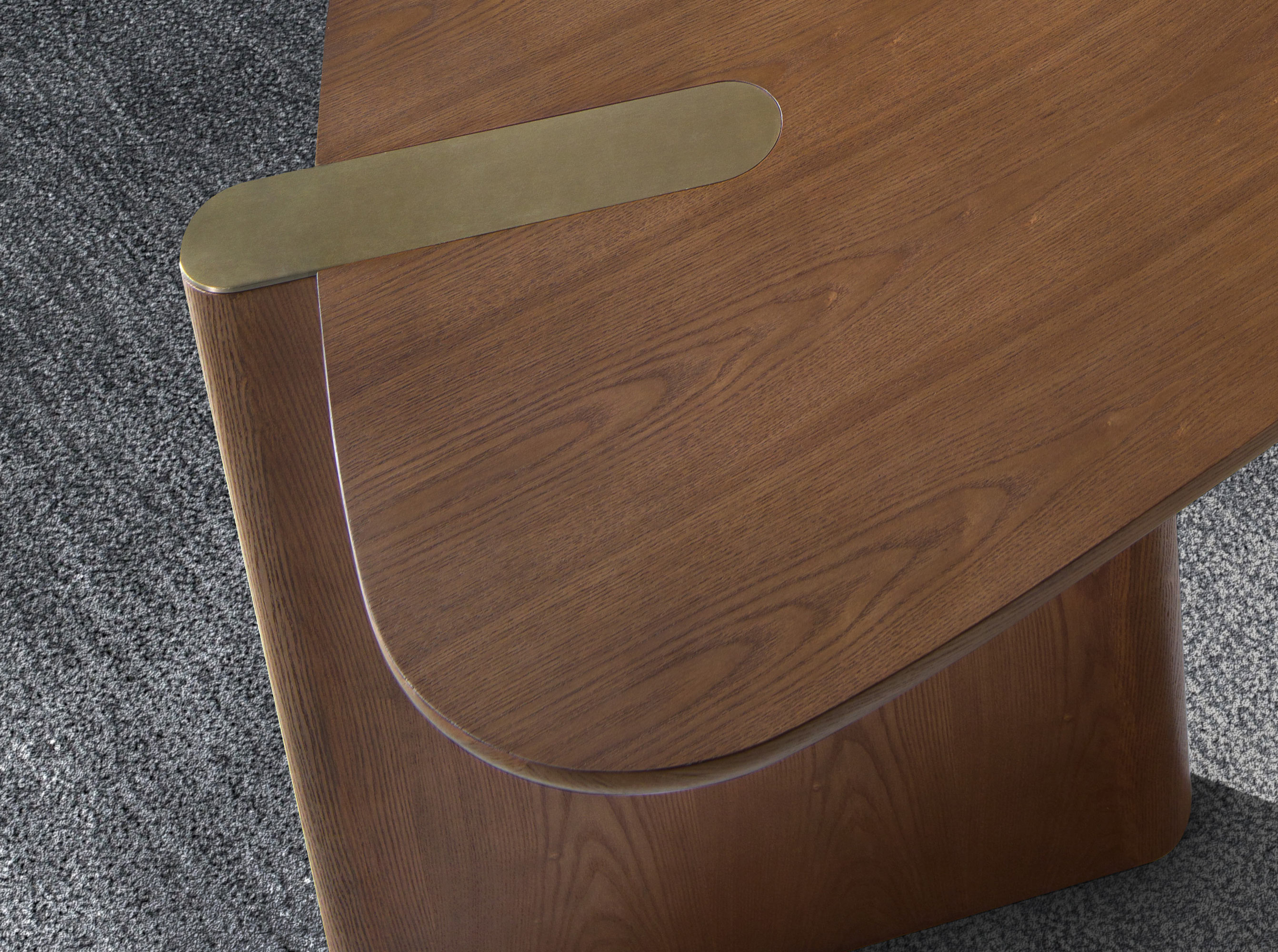 – Su original diseño de patas integradas en la estructura, fabricadas en madera chapada en nogal natural de 0,5 mm de espesor, crea una silueta continua y fluida que refuerza su estética contemporánea y de diseño exclusivo.