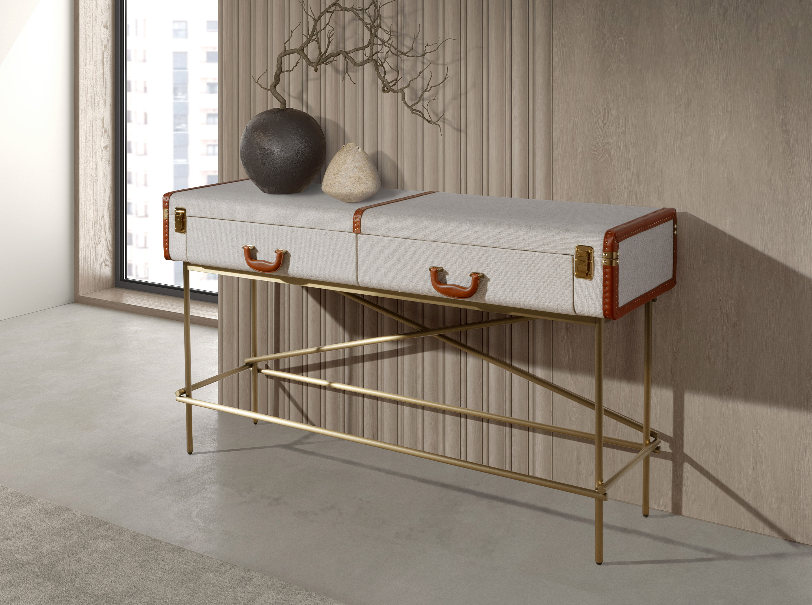 Consolle rettangolare, tessuto, noce e acciaio lucido dorato modelle 3271 Angel Cerdá S.L.