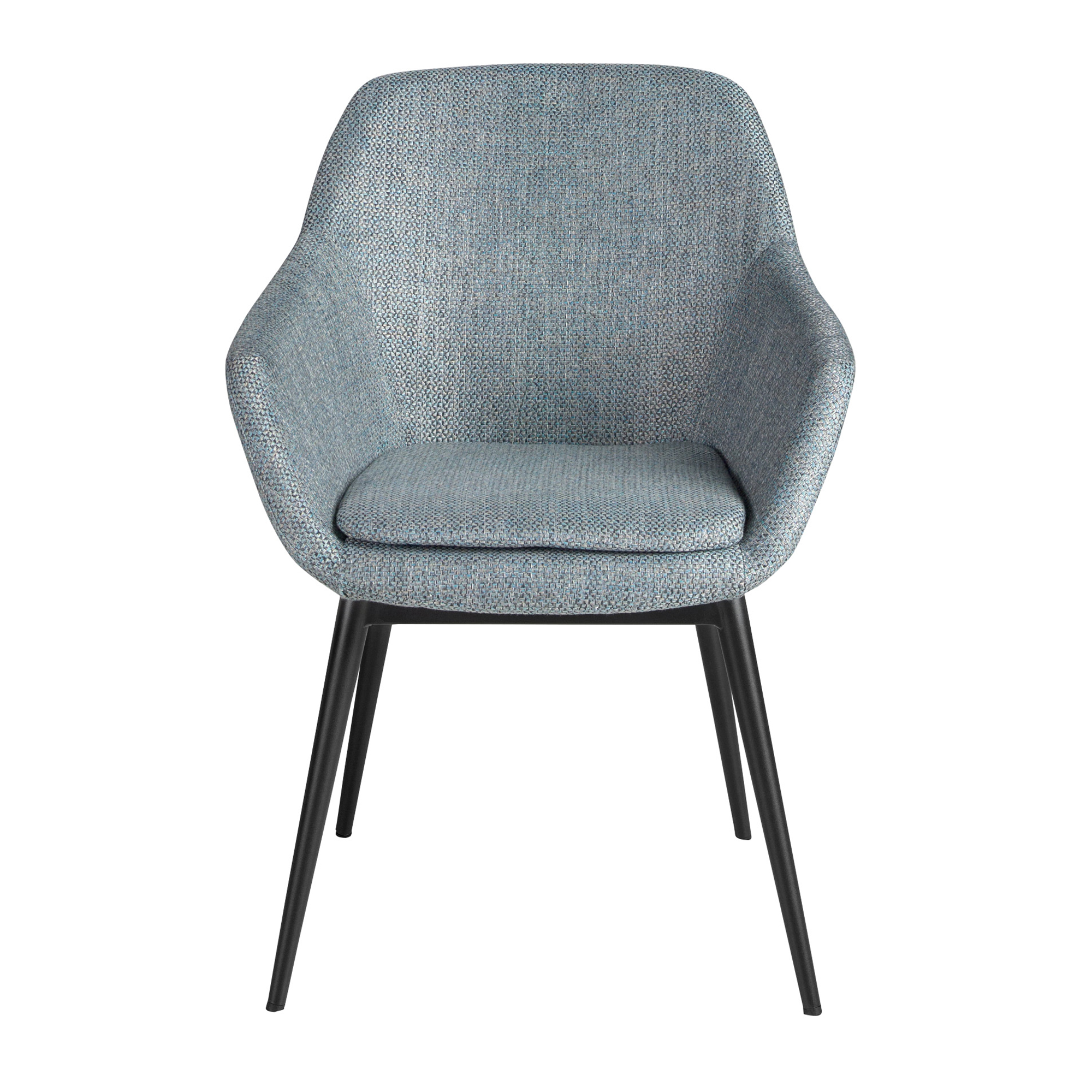 Sedia con braccioli dal design moderno con seduta e schienale rivestiti in tessuto blu grigiastro mélange. Le sue gambe in acciaio inox verniciato a polvere epossidica nera, dallo stile avanguardista e al tempo stesso senza tempo, la renderanno un must-have per la tua cucina o sala da pranzo. Questa sedia del marchio Angel Cerdá unisce lo stile unico e personale del brand alla massima comodità e stabilità, grazie all’elevata qualità del rivestimento e all’originale struttura delle gambe.